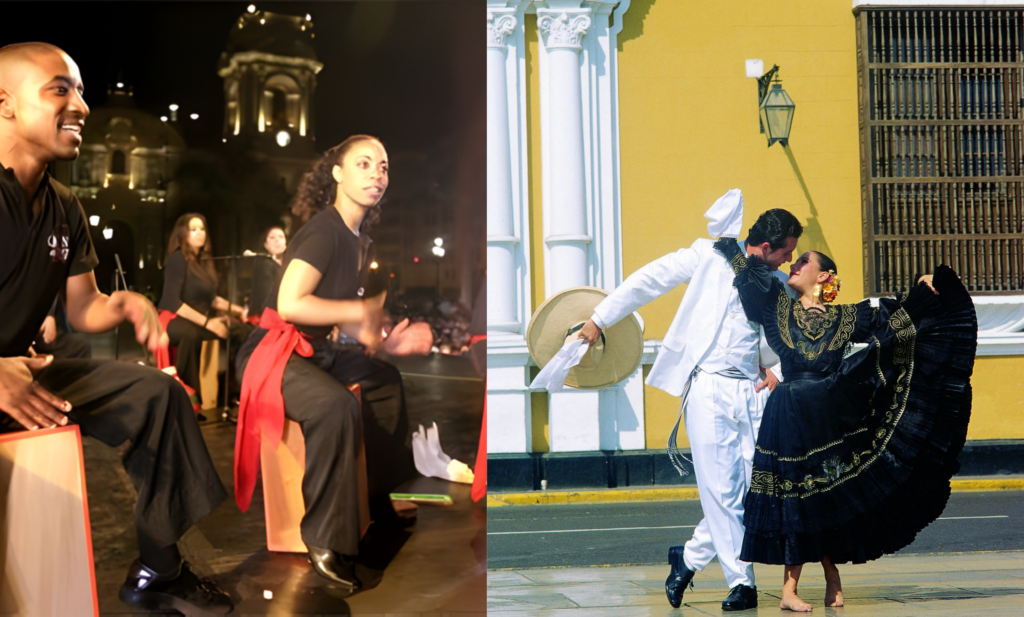 Suele ir acompañada del Cajón Peruano, un instrumento de percusión nacido de la creatividad de los esclavos africanos y convertido hoy en uno de los símbolos musicales más reconocidos del Perú.